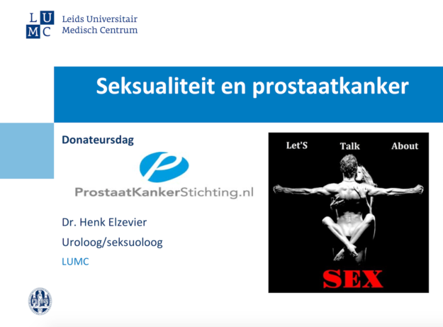 Presentatie gegeven door H.W. Elzevier op Donateursdag van de Prostaatkankerstichting over prostaatkanker en seksualiteit. Klik hier voor de video